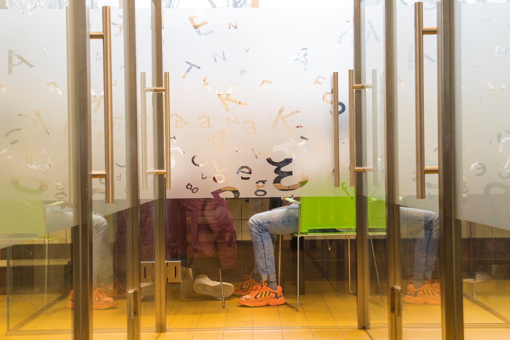 vloerstickers geplakt, lampenkappen gestraald en gespoten, bewegwijzering gemonteerd, tribune en boekenkasten vzv fullcolorprint, schapaanduidingen, freesteksten, raamfolies, etc.